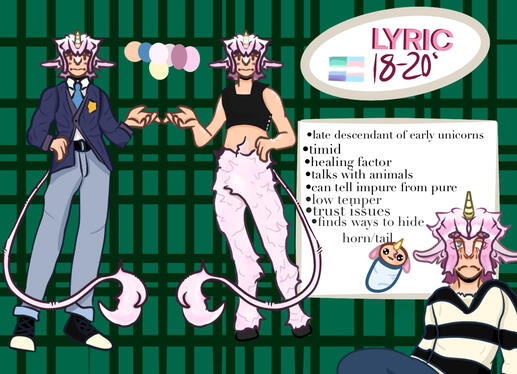 hello! I'm glad to see youre checking this carrd out! I would love it if you took a look around at my work! I'm an semi-beginner digital illustrator that's still experimenting with my art. I like to do my own thing and ignore most of the 'realism' when it comes to coloring and anatomy!I enjoy drawing ocs, sonas, and any other characters. even when it's a struggle to do full bodies, I like to make character sheets as well. some of my interests are: idv, kpop, overwatch, rivals, and much more!my commissions are always opened unless spots are filled. if you ask for a commission when this happens, you'll be put onto a wait list. 90% of the money earned gets saved up for my doctor visits and testosterone refills.